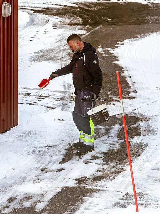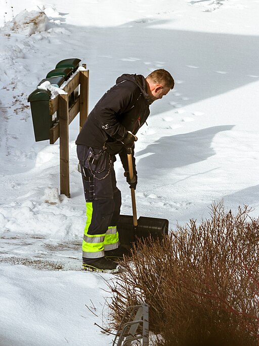 Talvikaudella työkaluina toimii lapio, kola, linko ja reipasta mieltä.